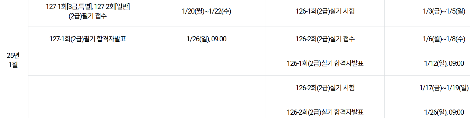 지금 25년도 초 시험날짜도 나와있어서 같이 알려드립니다.