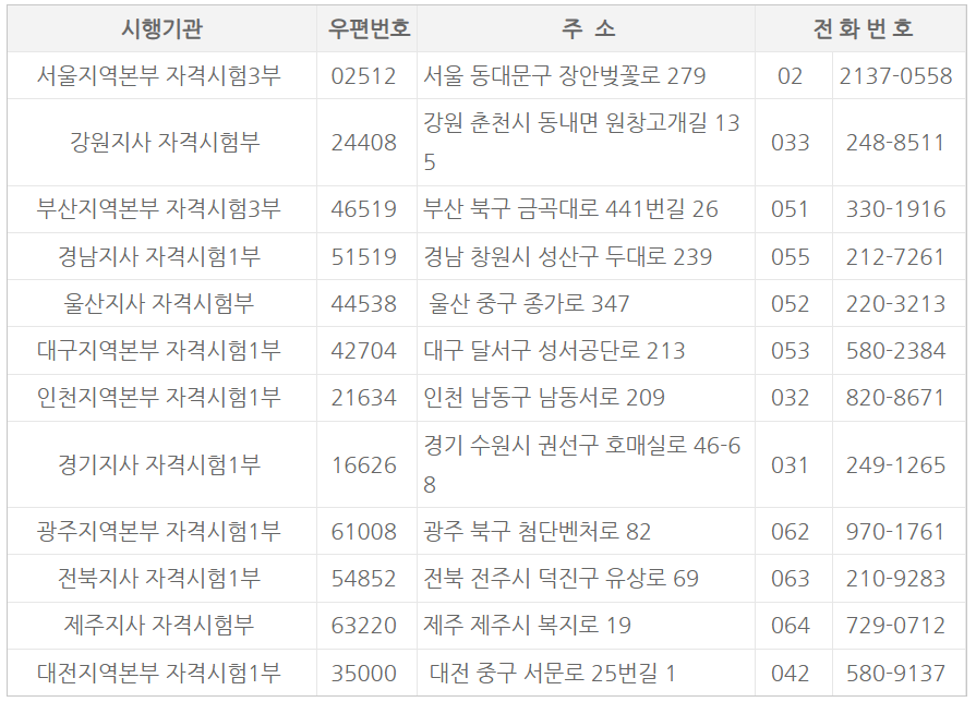 참고로 시험 시행기관은 다음과 같으니 참고바랍니다.