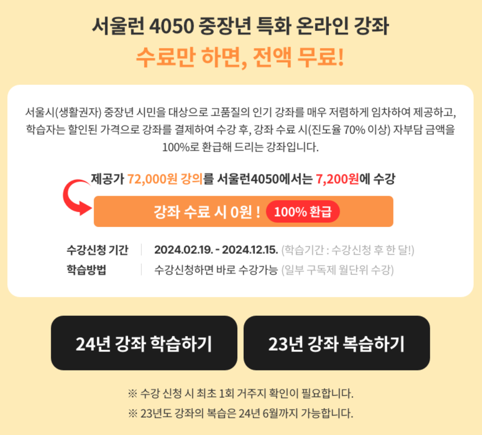 서울시 중장년 시민들을 대상으로 고품질 인기 강좌를 아주 저렴하게 들을 수 있는 기회입니다.