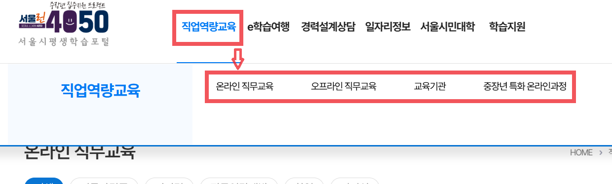 서울런 4050은 일을 하고 싶지만 경력이 단절된 분들이나 더 나은 일을 하고싶은 분들을 위한 교육 지원 사업입니다.