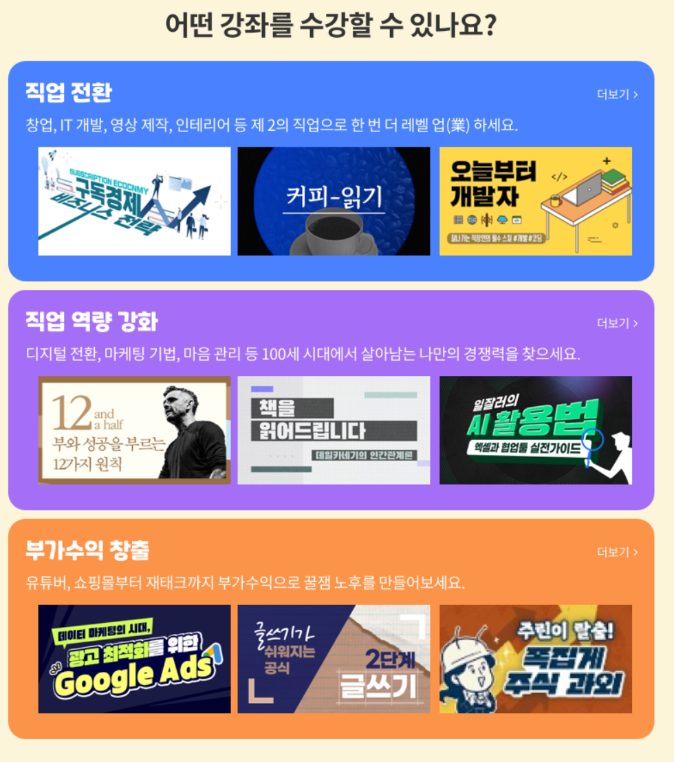 지금 현재 처한 상황에 맞춰서 나에게 맞는 강의를 들어보세요.^^